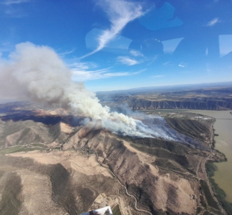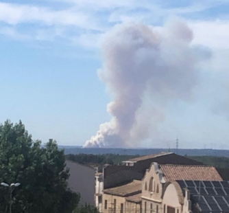 The Mequinensa wildfire was initiated under a day of moderate W-NW winds and significantly low relative humidity levels (less than 10%). The left flank of the fire was constrained by the scar of an historic wildfire from 2023.The slope, orientation and wind alineation, with high fuel availability resulted in a high-intensity fire, predominantly in the head, which exceeded the extinction capacity. This energy has resulted in the formation of a dense and high plume, despite the absence of condensation. The following day, the fire was reactivated and spread with a strong sea breeze (from the S-SE), opening the FD of the first fire, as illustrated by the hourly perimeters.